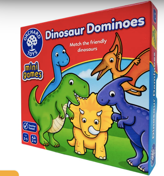 ¡Diviértete con el dominó de dinosaurios! Une losetas para formar una línea en este juego educativo. Ideal para jugar en casa o de viaje.