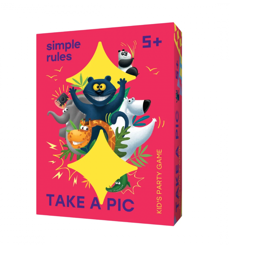 Embárcate en un safari fotográfico con Take a Pic: lanza dados, localiza animales y sé el más rápido para ganar cartas. ¡Diversión y rapidez para +5 años!